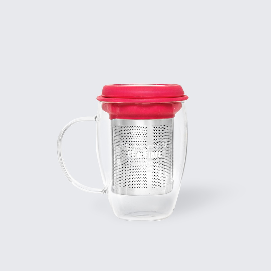 16oz Glass Tea Mug with infuser, lid and silicone band.